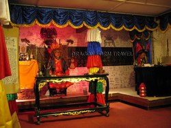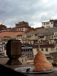 打從飛機降落在群山環抱的大草原中開始,我對這片位於海拔三千三百多米高的土地的迷戀便一發不可收拾。綜使高原反應令我頭痛欲裂,我還是要吸著氧氣遊走百多級樓梯,看看「天生橋」下渾然天成的溫泉流縱;黃昏時灰藍色的天空下,「松贊林寺」的輪廓與放在藏族家庭走廊的酥油交織成一幅景深有致的示範圖;怎麼少得五官身形比例也配合得宜的藏族導遊阿郎?他娓娓道來香格里拉極附戲劇性的前世今生